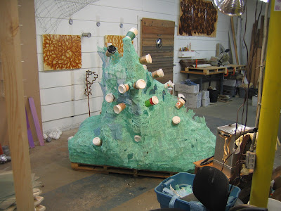 this object will be clad completely in reclaimed siding i found on the side of the road. I think when i finish closing the structure in i will light it from inside with some ultra bright compact flourescent bulbs