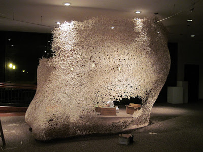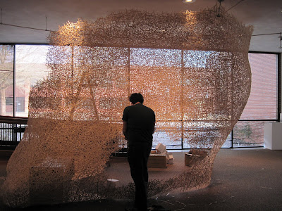 Day Five comes to a close. I am about two work days away from resolving the sculpture, I think. I still need to secure one precarious section. Tomorrow I will resume printing at Henderson State. After a pizza party with the art faculty I am taking the night shift off site to sleep off the effects of too much pizza hut.