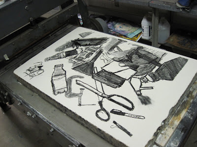arkadelphia day six was another day with half weaving and half printing.the first etch and proof of the lithograph came off nicely. I will probably add a little bit more to the drawing then master printmaker david warren will begin editioning.
