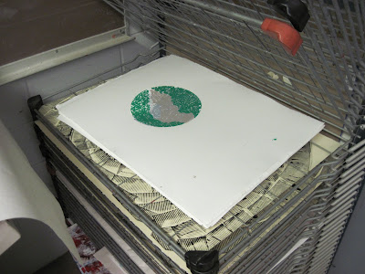 the five color screenprint printed in a corporate pallete inspired by coffee shop packaging also came out well. today i will work on some unique screenprint works and another collage relief print as well in the printshop after resolving the sculpture in the morning.
