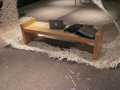 I made some headway defining the form on the arkadelphia piece today. I am hearing some creaking and shifting that makes me nervous but I am ignoring it until something actually falls. i also began working more on integrating the bench into the piece.