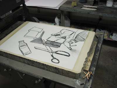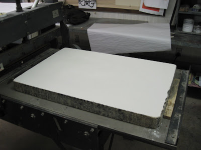 the already levigated stone awaiting the drawing. As someone who processed my own stones for lithography you cannot imagine what a treat it is to have a prepared stone waiting for you to do whatever you want to it.