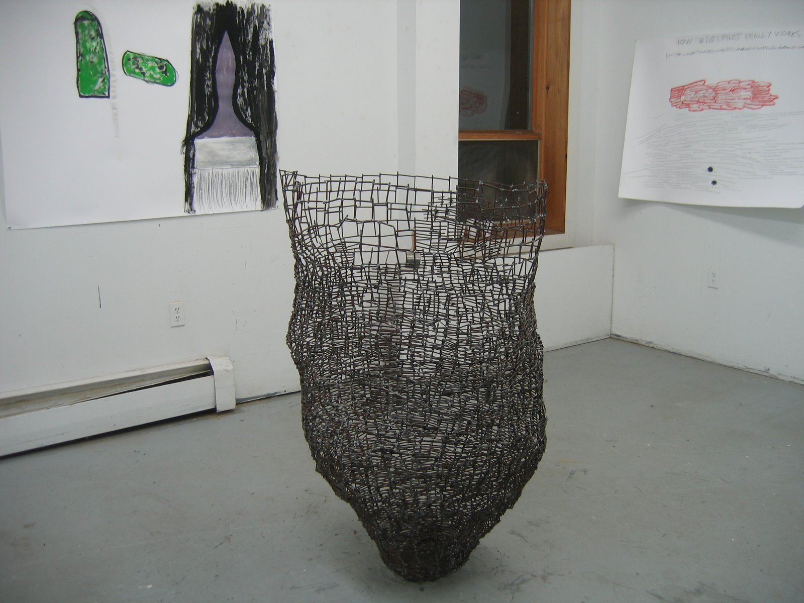 for the first time in a while i have really felt focused and less anxious. I am continuing to explore the welded spike piece and am moving it more in the direction of a basket. i continue to revel at the sheer amount of snow, there really is something about the crisp air and white landscape that helps focus the mind. Today I am doing laundry and fortunately the laundromat has wireless. Now back to the snow.