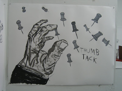 So I made this pair of objects, kind of like a snow dialog. They are made of laminated scrap wood from around the studio here, which i cut and formed then shaped with the sander. the one on the left is stained with sumi ink and the one on the right is pearlescent white gouache with a top coat of blue gouache.
