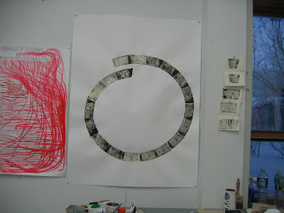 so the other night i really wanted to make some prints but the print studio is a cold and icy walk from my sculpture studio, so I improvised. I inked up some coffee cup sleeves with sumi ink and hand printed them onto sketch book pages then i chine colle’d/collaged them onto a larger sheet of paper and just followed the curve of the sleeve until it made this gesture. Kind of a zen mocha effect.