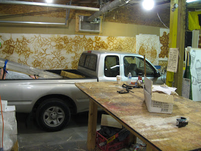 actually it started with me parking the truck inside the studio overnight so the humidity wouldn’t mess up the woven panels i made ahead of time