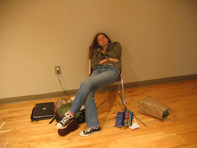 well day 2 went okay. for the first time i had brooke on site with me while i was working. she is only in town until monday when she ships back out for another dig. since i like to start my day around six when i am doing an install she was prepared to keep herself entertained while i worked, she had her knitting, and internet work, but instead she took an unexpected detour to snoresville.