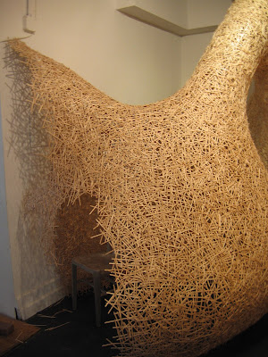 today i spent most of my time fleshing out the form nearest to the entryway, and started making it lead out into the gallery. That is all for now, looking forward to getting started back again tomorrow, and i’m hoping that the relative humidity doesn’t change too much causing the sticks to bend and pop.