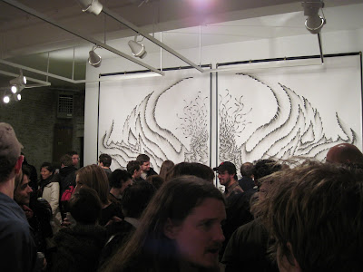 I was truly astonished at how many people just kept coming and coming to the opening last night. Thank you to all who braved the tight quarters it was really an overwhelming experience, I hope that those whoe missed the opening will make time to go see the show in person as it will remain on view through February 27.
