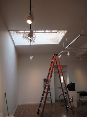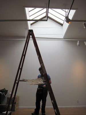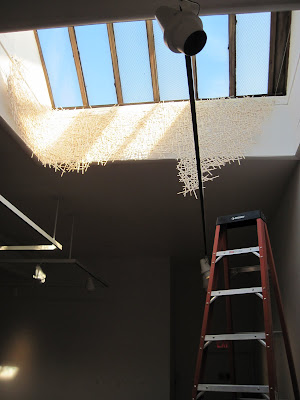 today I flew on a plane, then i told a taxi driver where to locate williamsburg, after convincing him that it was in fact in Brooklyn, then i wove and hung some stir sticks from the ceiling, now i will sleep until i weave tomorrow.