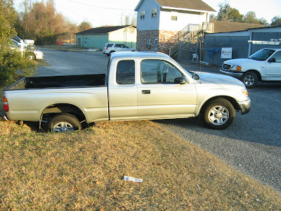 on sunday brooke and I got married in what can only be described as a perfect wedding. We of course have no other measure of the success except for the guests reaction (which has been gushing)and the permanent smiles on our face. I am putting a few unofficial audience taken pictures up but we are anxiously awaiting our official wedding photographs. My uncle andy also put up a weekends worth of pictures on his website, you can peep them here (link to andy brilliants wedding photos) we have spent this week setting up our new apartment, which is a combination of store bought, found , and homemade furniture and accessories. on wednesday while shopping for a couch, which we still haven’t found, i backed a bit too much and ended up in the ditch.