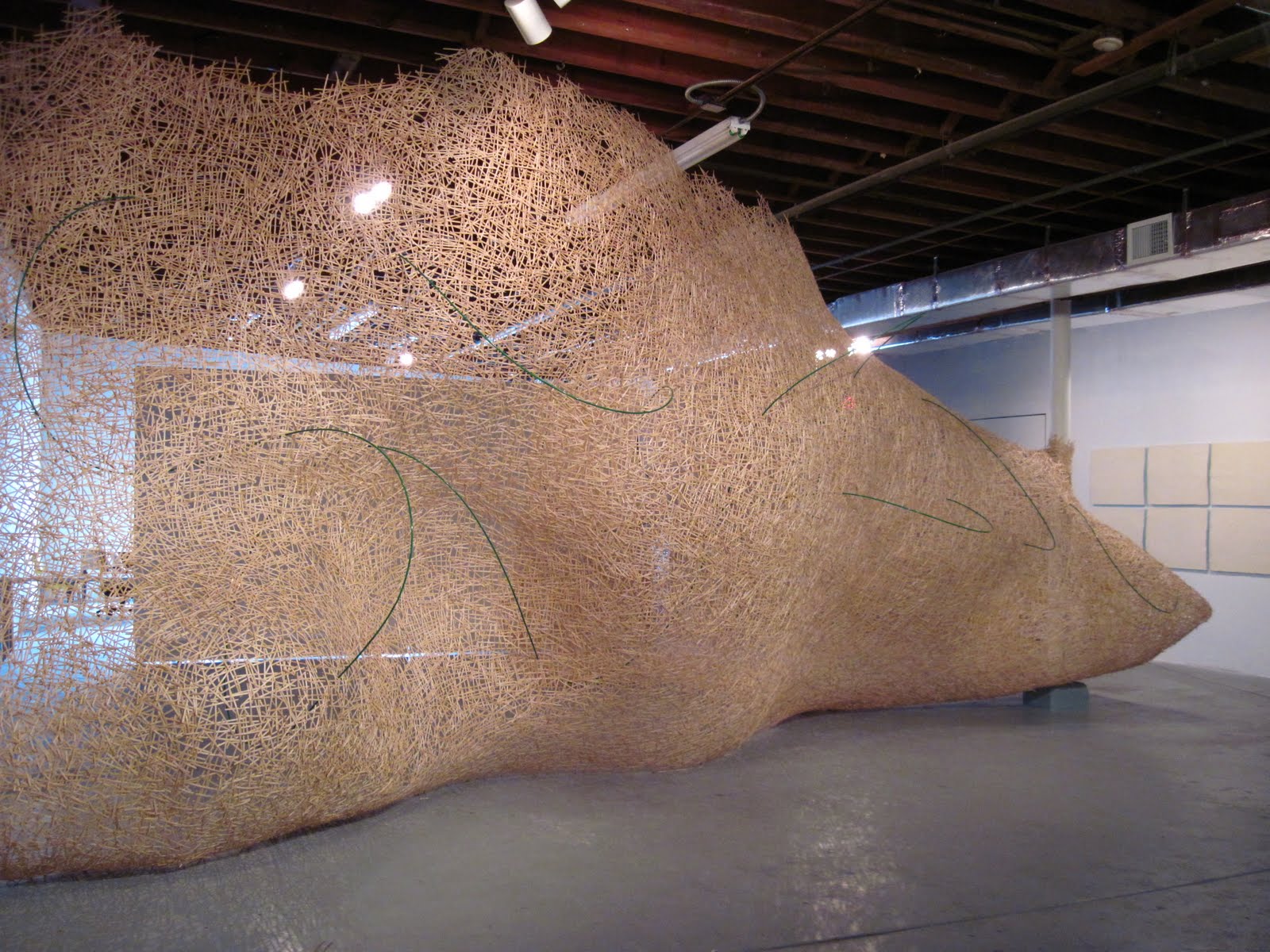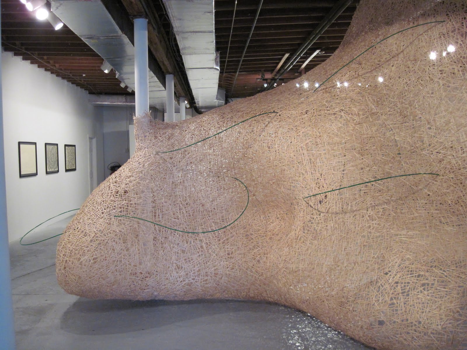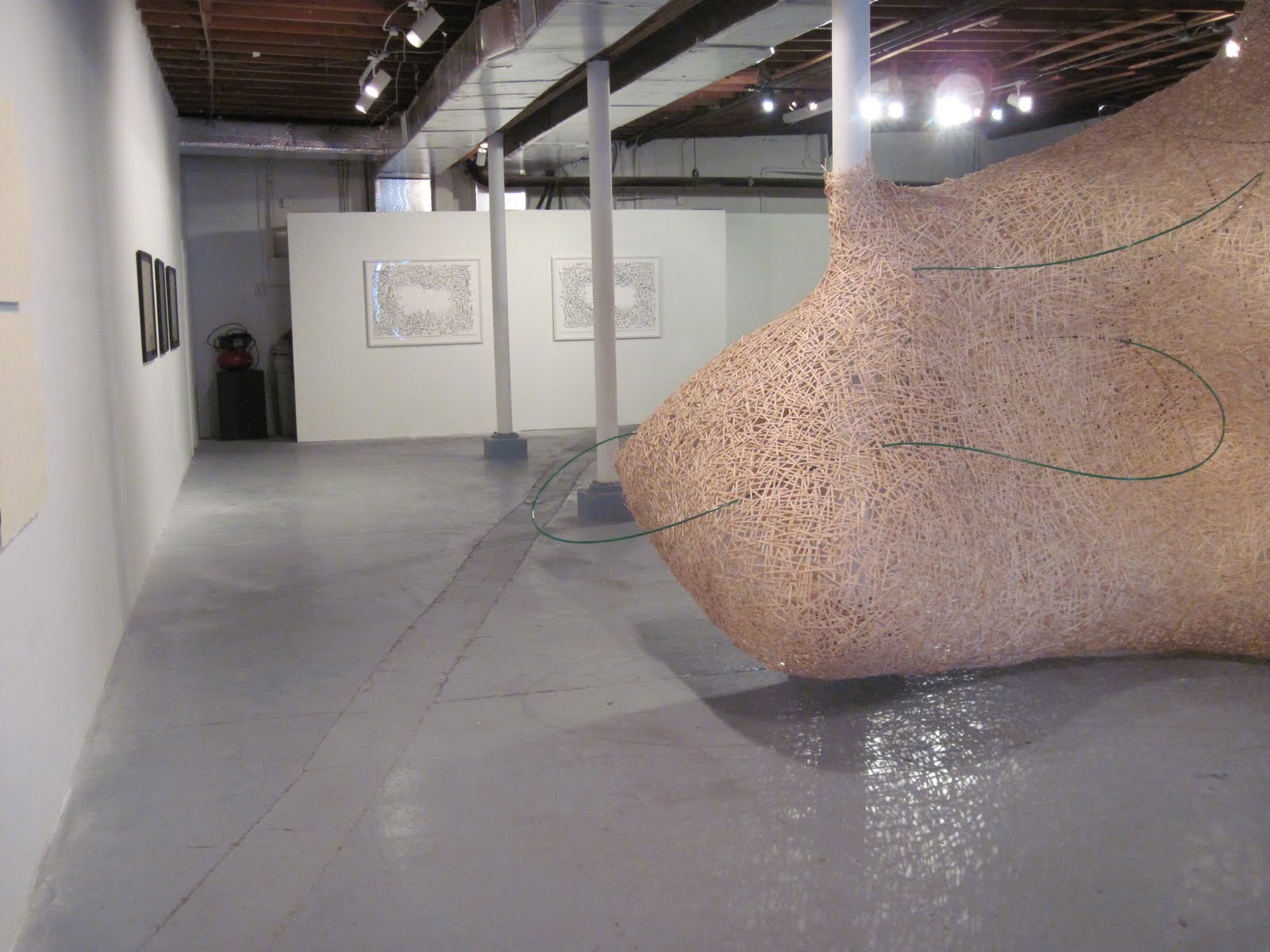 The show was a great opportunity to not only build a new site-specific piece, but also provided an opportunity to hang some of the recent prints in context with the installation. I am very pleased with the overall rhythm this creates within the installation. As well I took this opportunity to bring forward some of the experience I gained with the Sticks Straws Sleeves and Lids installation in December by incorporating a meandering green straw line throughout the installation.