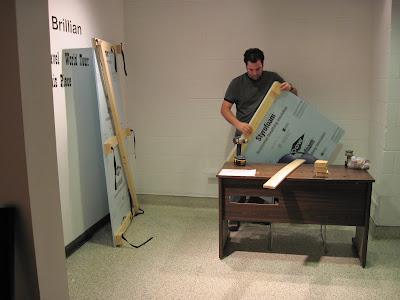 so I am rearranging the component parts of the styrofoam travel crate i made in order to make something special for the opening.