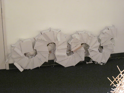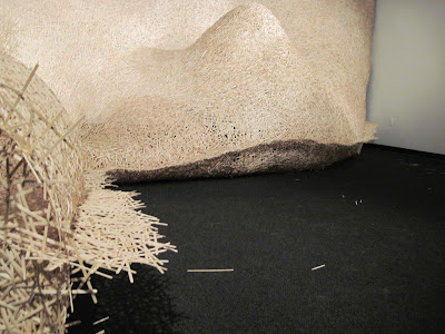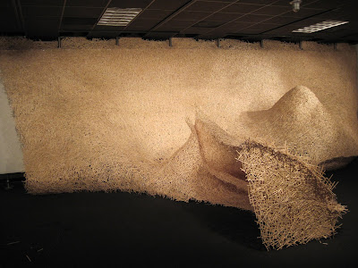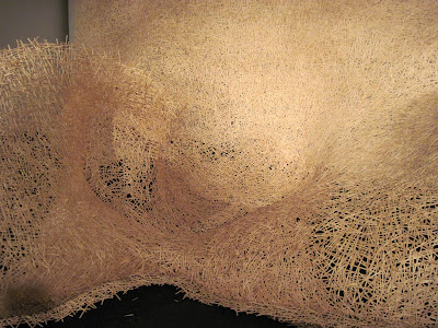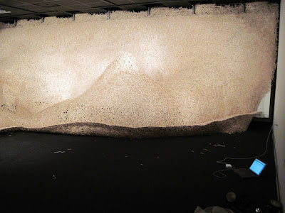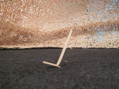 I have reached the end of construction on the piece and need to resolve the lighting, clean the gallery and finish something else before the opening. I am giving my artist talk today. giving a talk is something that always bookends a project for me. It causes me to take stock and think about how I got where I am now. In this instance I can immediately see the lessons learned in the making of the city gallery piece and the norman piece synthesized into the memphis piece. In particular is the intersecting planes woven back through the structure that emerged in the norman piece, and the severe curves and lyricism of the city gallery piece. I am continually amazed by the variations and discoveries i am making along the way.