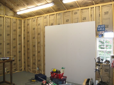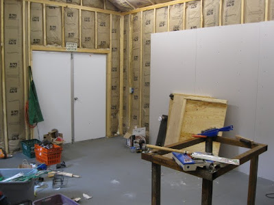 essentially this is a 16×20 prefab structure on blocks transformed into my dream studio, at least for the next two years until we move again. This is what is waiting for me when I get back from norman.the sheetrock is half finsihed, i blame my sheetrock guy, so i blame myself for not finishing before i left town for oklahoma. I did manage to get all four of the fluorescent lights wired up without electrocuting myself, which is a real accomplishment.