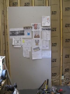currently this half of the idea wall is being used even before I finish hanging the other half of the idea wall. Most of those scraps of paper are for upcoming installations and gallery maps of various other works in progress.