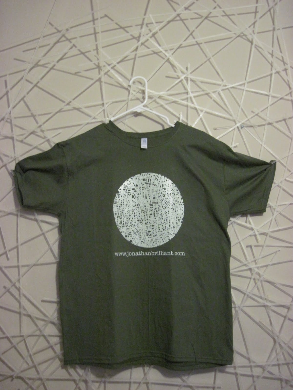 To keep myself amused and to make the t shirts more of an ” artist edition” I have been rotating colors and types of shirts with each batch printed. This new batch is currently printed on 100% ringspun soft cotton t shirts, in army green. I was really happy with the way these turned out and with the recent switch in glow product the night time effect on these is even cooler. still only $20 through the website.
