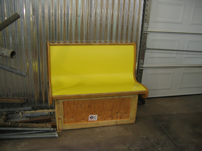 I took one of the single benches and threw it on top of an old crate in order to create my very own eating seating in the studioI then proceeded to disassemble the two double seats to see what I could do with them