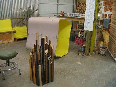needless to say after i re-installed the frames and played around the subway seats as room dividers I moved on to execute my original vision for the seat parts.