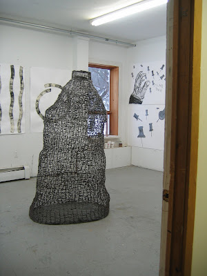 well it wasn’t a bad month but I am so ready to get home and see brooke, and get back to my own studio. Vermont studio center was an amazing place and i will definitely come back in the future. the tally for the month wasn’t bad, 12 works on paper in varying states of progress, and some major head way on the steel piece. along the way i got diverted with those little wooden constructions and the snow does wonders for creative focus. brooke gets in tomorrow around noon and that should make for a fun roadtrip back.