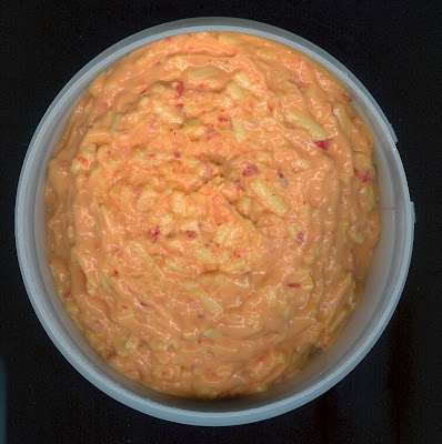 It saddens me to report that sometime last year Safeway did away with the chintsy container of pimento cheese they had been stocking. To make up for this my fiance and I began making our own pimento cheese, which has been met with various levels of success.