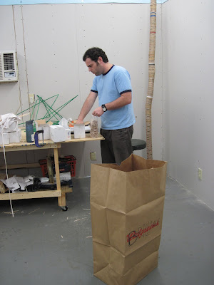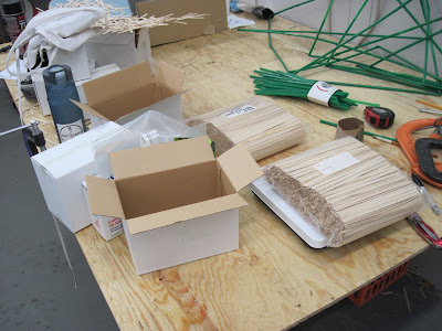 Since I have a limited amount of time on the ground in Berlin before the opening, I have tried to prepare as much as possible ahead of time so that I can maximize my work time. To do this I have packed my sticks into ziploc bags then packed them within duffel bags to be checked through to berlin. If I had more time there I might have secured a source for my sticks, but since my time is incredibly limited i.e the show opens on the 23rd and I have grown quite fond of the line of sticks I have been getting I figured it would be best not to tempt fate. I have a full day of travel ahead of me tomorrow and then if I am not too wiped out when I land in berlin I have my first day of weaving on another continent. This first day will be followed by six more days of weaving in Berlin, most likely interspersed with breaks for german coffee, bratwurst, bread, and the occasional siesta depending on the effects of jet lag. I am looking forward to getting some drawing and reading done on the flight too as airplanes tend to be incredibly interesting and fruitful grounds for creativity and idea generation.