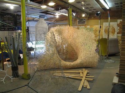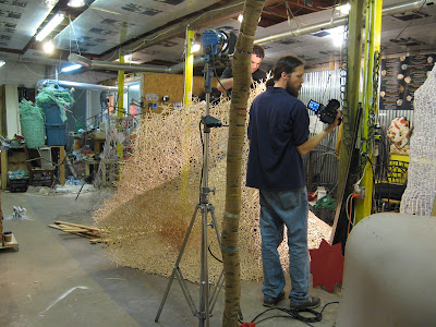 As Part of the “Contemporary Charleston 2009: Revelation of the Process” exhibition, each participating artist is being documented in their process on the way to the exhibition. Since I plan to create an entirely site specific/site responsive installation, I won’t begin the actual process of making until it gets closer to the exhibition. In the meantime the documentary film maker has met me at a coffee shop to do an interview and get some action shots of me liberating stir sticks from their natural environment. Additionally he came back to the studio to get some actions shots of me working on other things, as well he shot some footage of me taking measurements of the city gallery