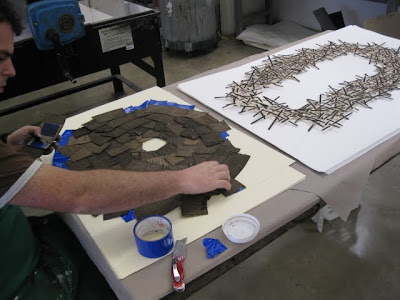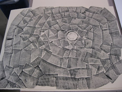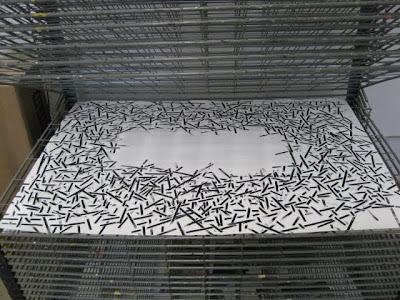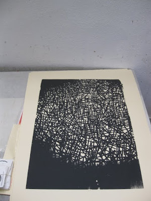 I spent all day today printing in the ou printshop. I began the day making a collagraph plate of collaged coffee sleeves and the lid from my mocha. I worked on another layered collage screen print, and further explorations of printing directly from the inked panel of sticks. I worked so late i actually did not get a chance to take pictures of all the prints before i packed them for return shipping. So concludes my norman stop of the tour, next up I will see you in memphis.