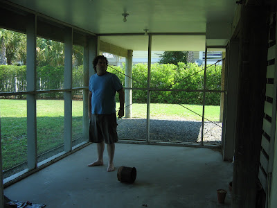 so we sold alot of our stuff on craigslist and our car to a friend, put the rest in storage, and only unpacked one bookshelf and some clothes for the summer. we are living in a beach house on Sullivan’s island south carolina and we are going to try and simplify our life. I hope the change will help my work, what am I saying I know it will. After three years in a windowless industrial space it is nice to be working somewhere else. Yesterday we saw a beautiful thunderstorm, something you never see in california. we were really taken with it, the lightening was the kind that shoots across the sky from cloud to cloud. This morning we woke up and went for a walk on the beach. After the walk I began making designs and plans for the screened in utility room under the house, which will serve as my new rust printing room. I am really exciting about working in this space. It has been a few years since i worked outside. Next week I will try and go into to charleston and meet with people to see what is going on and try to reconnect with people. I have one more application to send off, and then my application binge will be over. I hope to locate some industrial space in north charleston, to do some fabrication and dirty work, but if I can’t no big deal. today we are going to look at wedding locations, and try and start to make some decisions about when and what form our wedding will take.