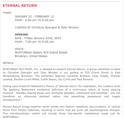 I have finished up working on the installation at USC and am now prepping for the trip to New York next week to begin work on “Eternal Return” at Nurtureart.above is the press release and info for Eternal Return.