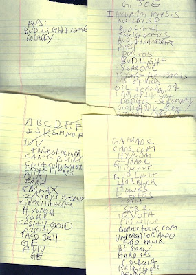 below are my actual superbowl notes, sometimes i jot these down in my sketch book. Taking notes on the commercials i watch is a habit i developed when i though i might apply to go to graduate school at the institute for the study of popular television at syracuse.