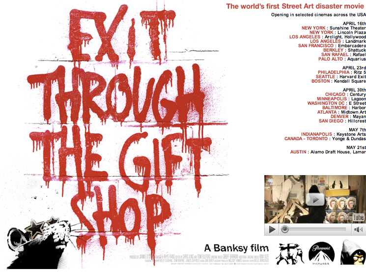 It is true that one of the things that seems to privilege visual art over other forms of expression is the issue of authorship. Although still an extremely conservative view to have, most art audiences cling to the academic idea of the author. The idea that the piece of art is some how a better experience if we know that the artist touched the work creating a physical record of the presence of the artist. Although many artists and curators assume the general public and larger audience for art are aware of the years of chipping away at this notion, the idea of the “hand of the artist” is still pervasive in contemporary museum and gallery culture. We need only look at the continued use of the term “masterpiece”. Masterpiece is almost an entirely invented idea as most working artists past and present don’t stop working until their dead. Therefore the idea of the masterpiece can be pulled back out of a career that is over, barring the return of a zombie giacometti. The logic to me would be that if the artist believed they had made a masterpiece wouldn’t they stop and move on to something else? However in music one is perfectly able to accept a quality cover band playing the musical masterpieces of artists both living and dead. In fact take a quick glance at any local music venue in your area with a capacity of 1000 or under and at least a couple nights a month feature cover bands(yes there are no universals but in general this is true). Unlike the visual art world where a cover artist or a simple copy artist would never see their work in the same venue where original art is hung(accept maybe in an ironic curatorial gesture or if you are making miniature versions of said works), it is perfectly acceptable for a cover band to appear in the same venue where more legitimately authored works will appear. Since authorship has not dogged the music world as severely as the art world, we almost don’t care who wrote or created a piece of music a cover or standard reworking of a tune can still recirculate with the same enthusiasm, witness the glee soundtrack. This is one of the nice things about academic music history being sort of impotent, the audience still mostly judges the music on it’s own merits. In the art world however Academics still rules the roost, many strategies to put the focus on the work have arisen over the years. One of which is to work anonymously in a collective. The results of these efforts tends to be so-so at best with most collectives only being as good as their best members and eventually moving in separate individual directions that are more interesting. Like supergroups of musicians who make an amazing run but then ultimately take on various solo careers with the clear talents moving on to make their own work. The other solution, the one that got me thinking along this line is for the individual to somehow remain doggedly anonymous. With the current fascination with the once maligned “street art” many formerly faceless art projects now have proud authors, unconcerned with whether their presence taints the work or not. I recently saw a preview for the Banksy movie “Exit through the gift shop” here online. I for one am excited, I really don’t care who makes the work for the Banksy brand, I just like the work, and for that reason I will definitely be seeing the movie, and not to find out the “author’s true identity”.