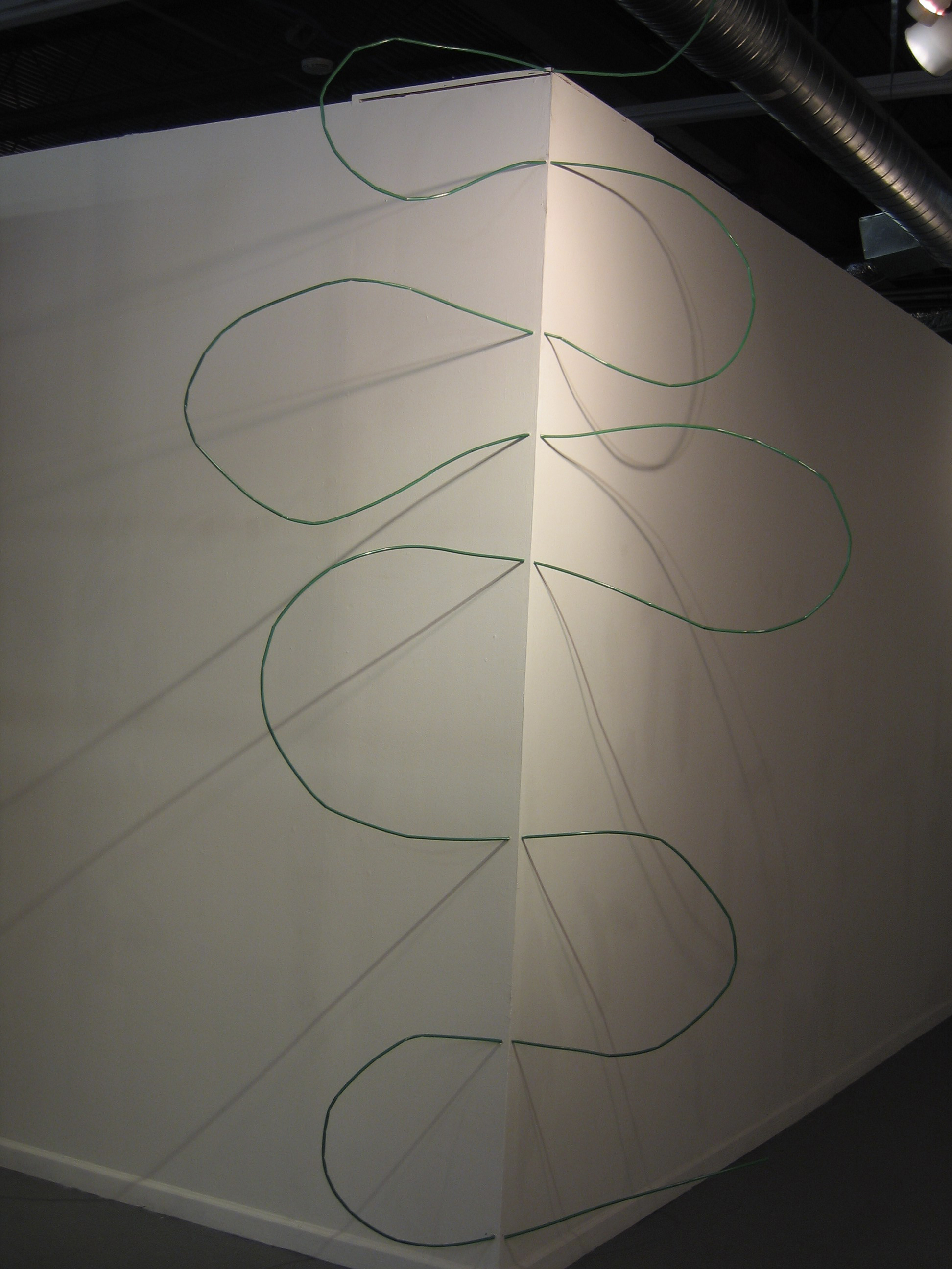 Coffee drinking straws are used to create a gestural line in the corner of the room 2006