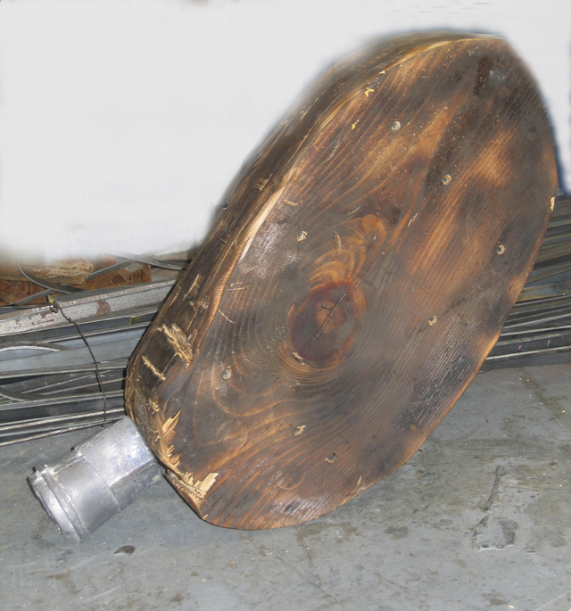 "untitled", laminated wood and cast lead coffee cup, 39"x15"x23", 2005