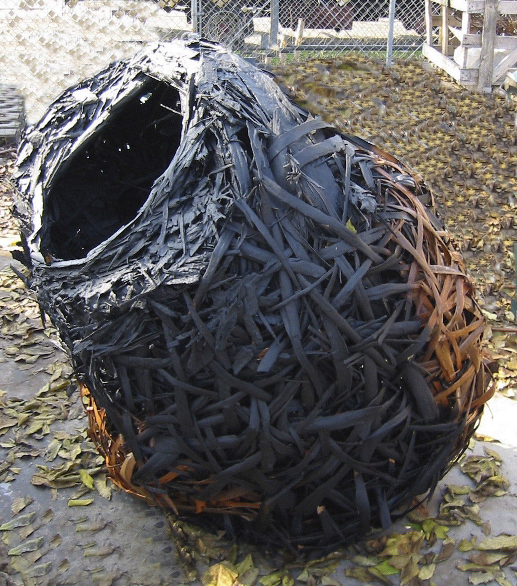 "untitled", tar and eucalyptus bark, 48"x52"x60", 2004